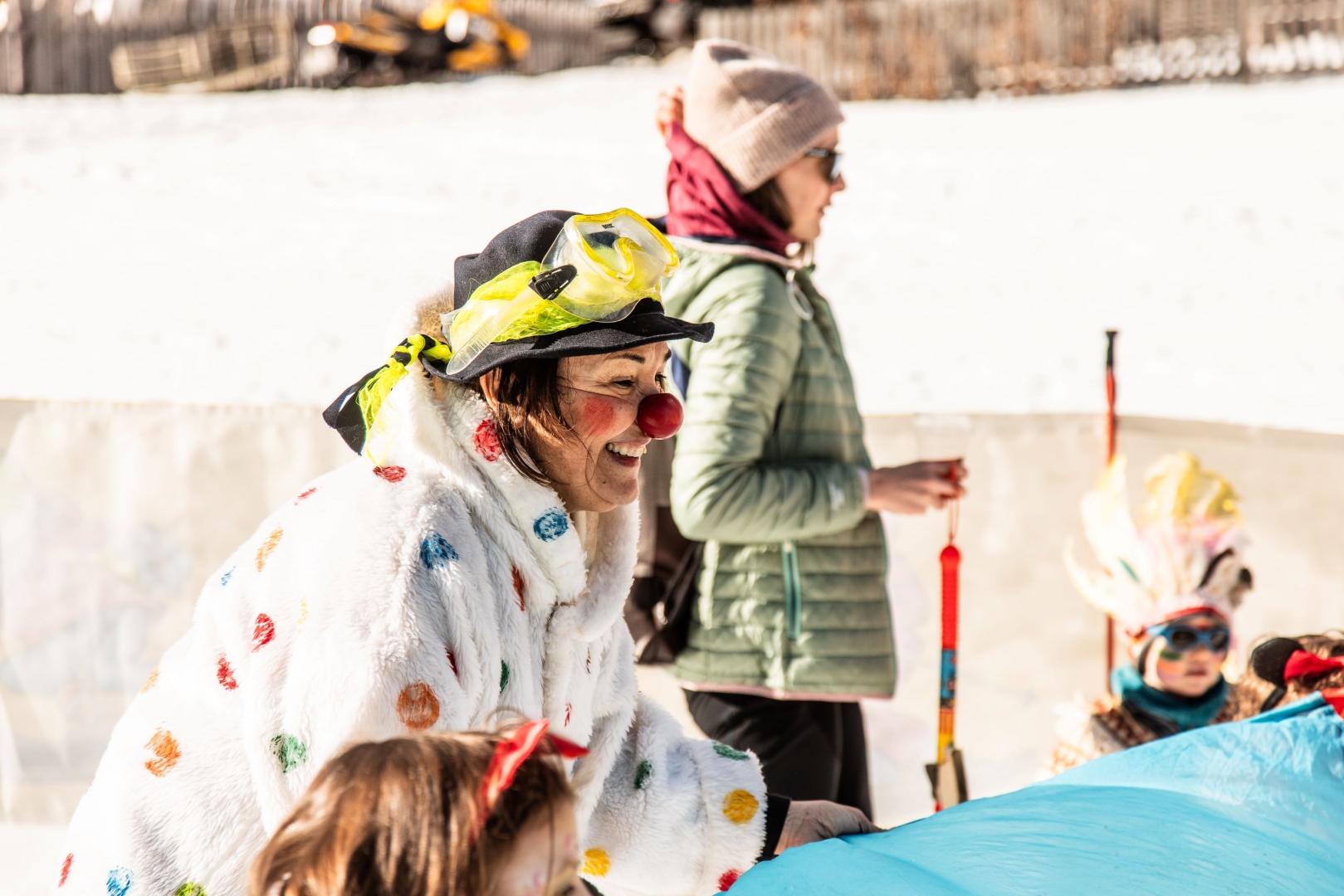 Festa de Carlascé cun musiga, clown, truccabimbi y val'de bun da mangé y da bëre.