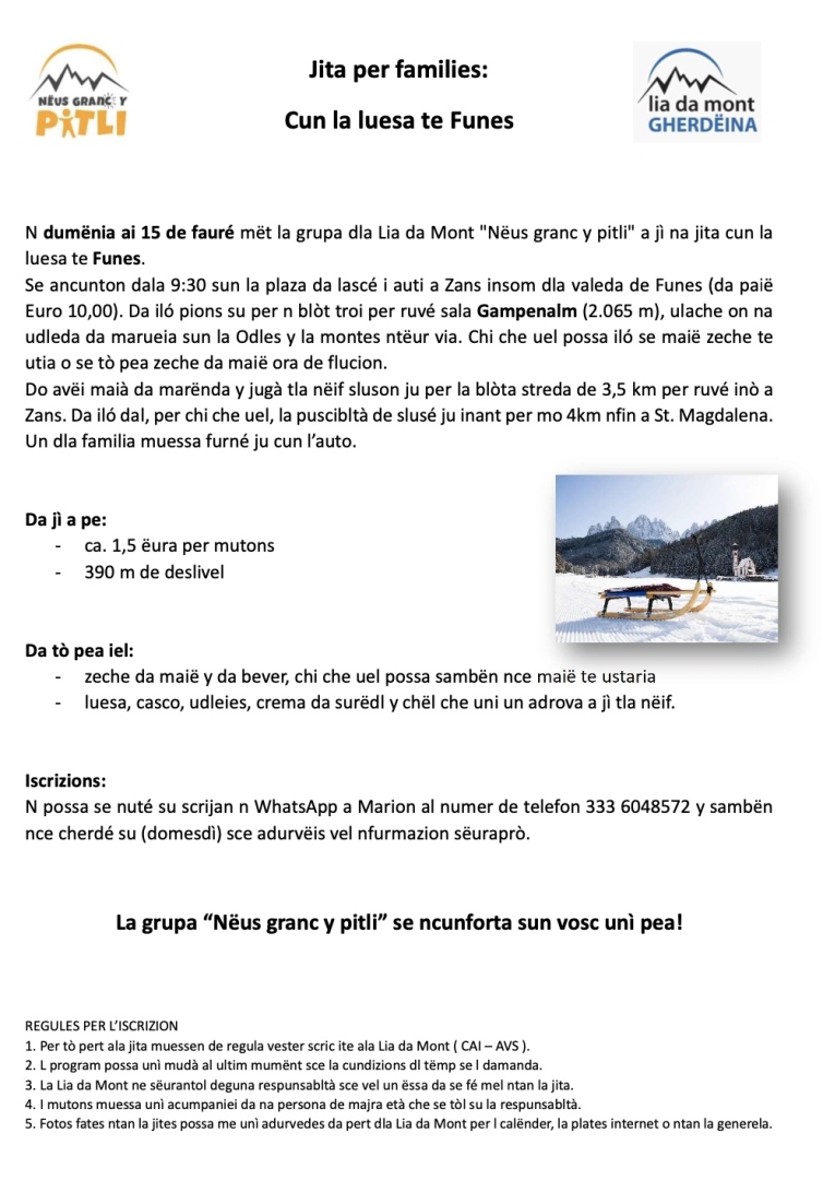 N possa se nuté su scrijan n WhatsApp a Marion al numer de telefon 333 6048572 y sambën nce cherdé su (domesdì) sce adurvëis vel nfurmazion sëuraprò.