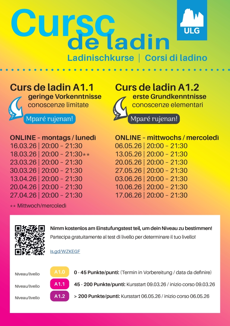 Curs de ladin gherdëina online A1.1 - Mparé rujenan!